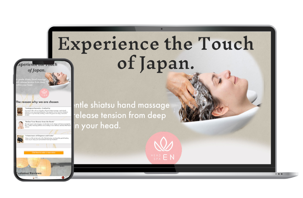 ■ターゲット: 30-40代女性 日本人はいなく、4割が白人、アジア系3割がくる顧客層 ■目的:LP用ファーストビュー(新規向け)■サイズ:幅1920px■ポイントビバリーヒルズ(カリフォルニア)でのジャパニーズヘッドスパ「エン/EN」のLP/予約サイトデザイン